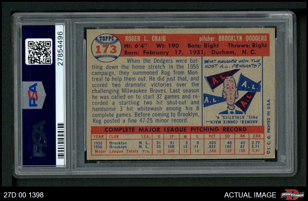 1957 Topps #173 Roger Craig PSA 8 - NM/MT