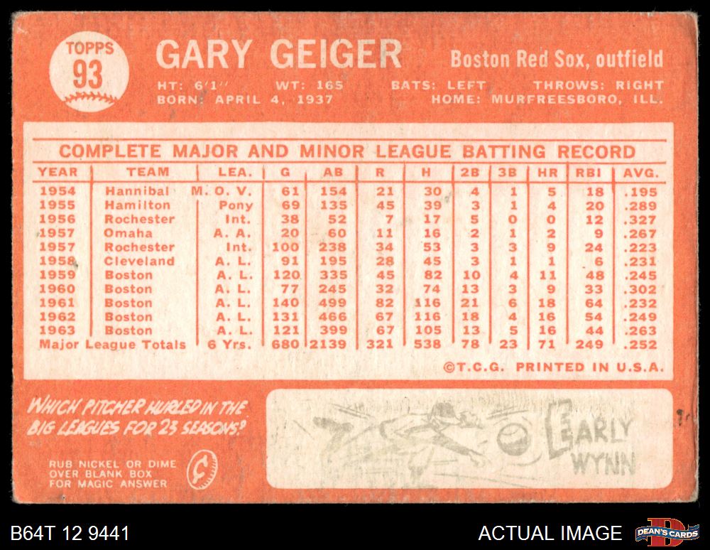 1964 Topps #93 Gary Geiger 1.5 - FAIR