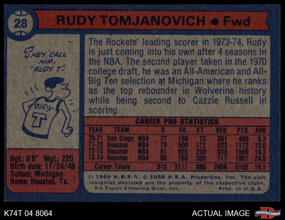 1974 Topps #28 Rudy Tomjanovich 6 - EX/MT