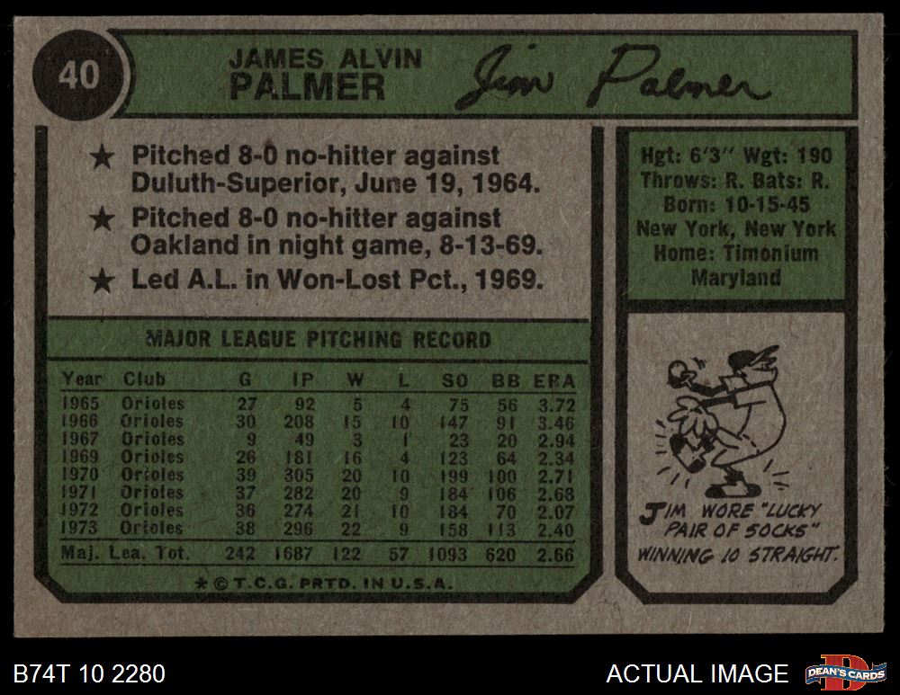 1974 Topps #40 Jim Palmer 4 - VG/EX