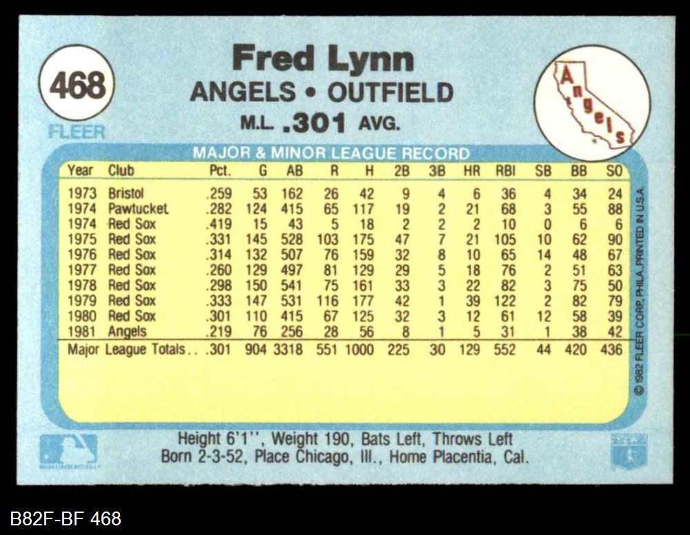 1982 Fleer #468 Fred Lynn