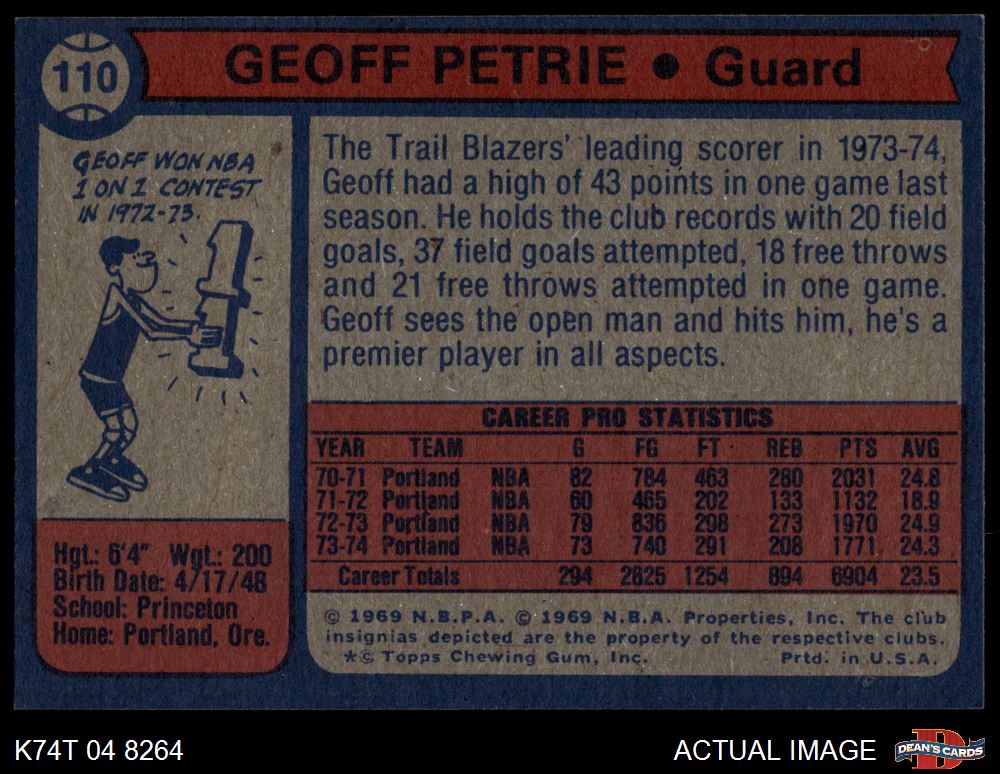 1974 Topps #110 Geoff Petrie 6 - EX/MT