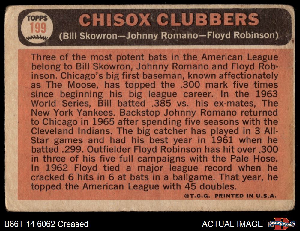 1966 Topps #199 - Johnny Romano / Floyd Robinson / Bill Skowron ChiSox Sluggers 1 - POOR