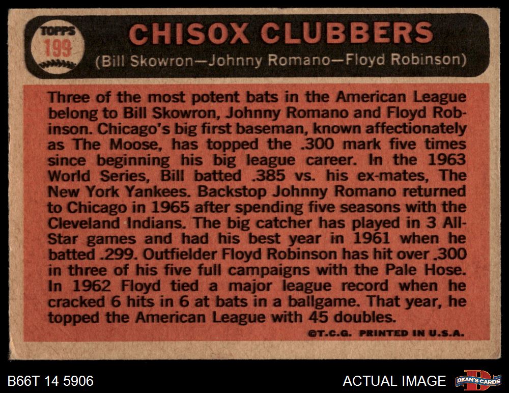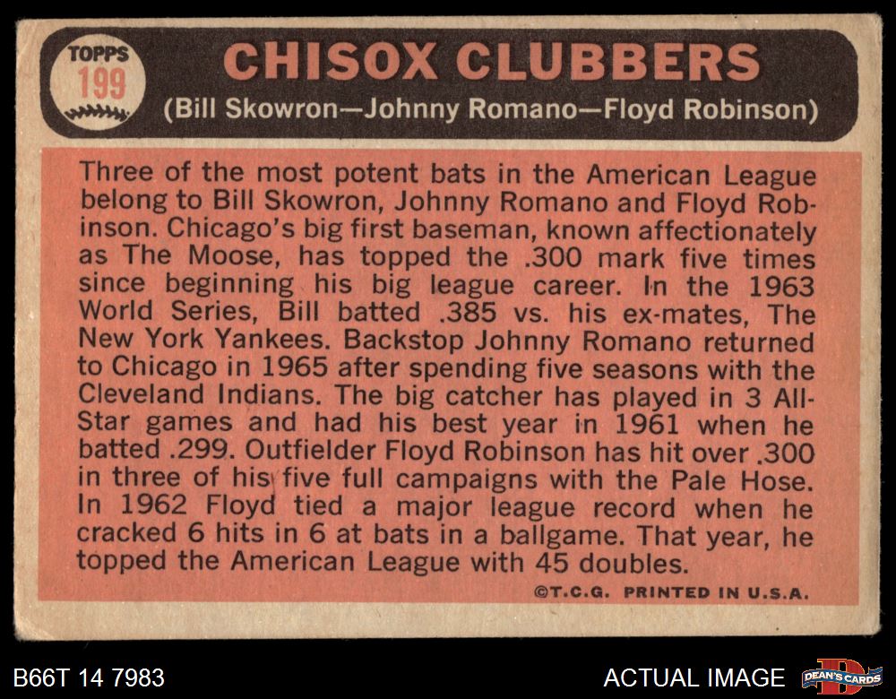 1966 Topps #199 - Johnny Romano / Floyd Robinson / Bill Skowron ChiSox Sluggers 2 - GOOD