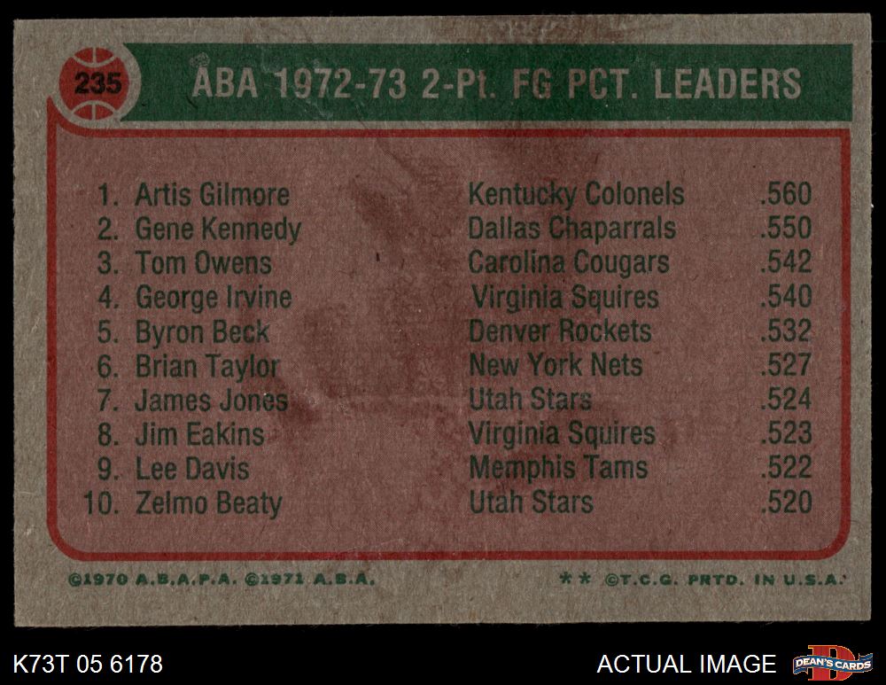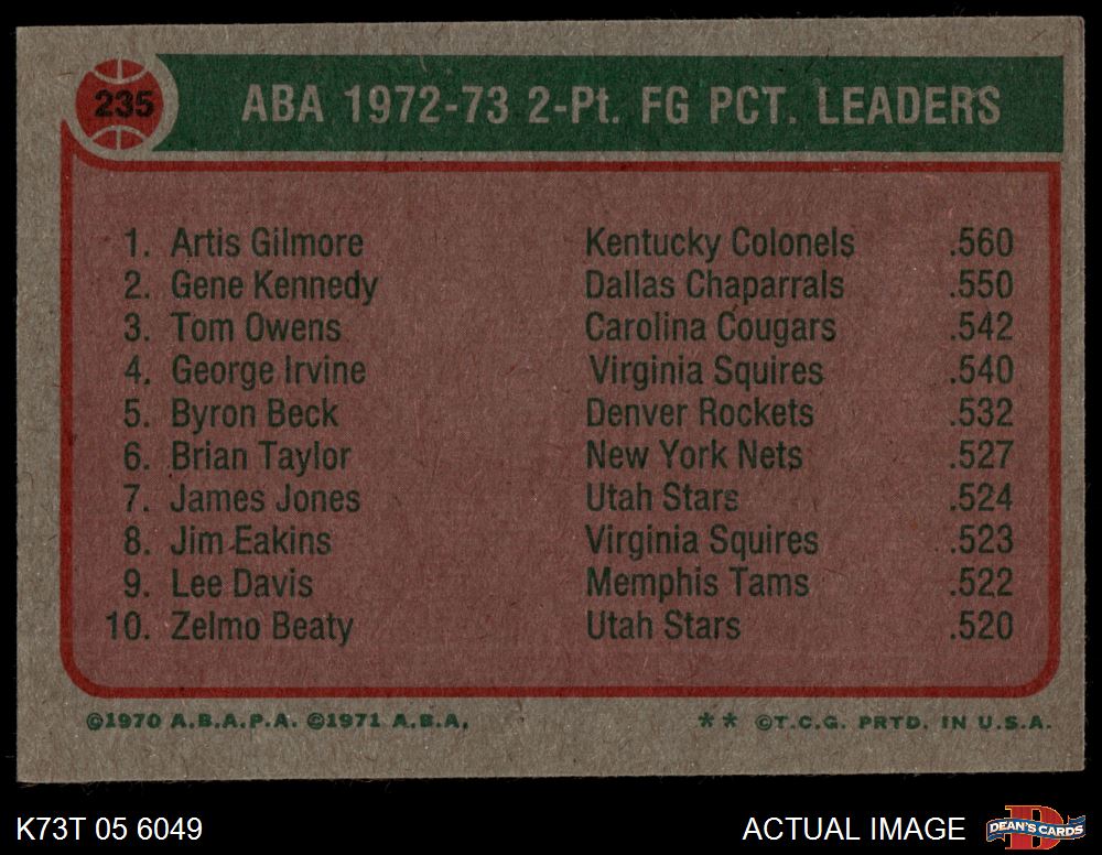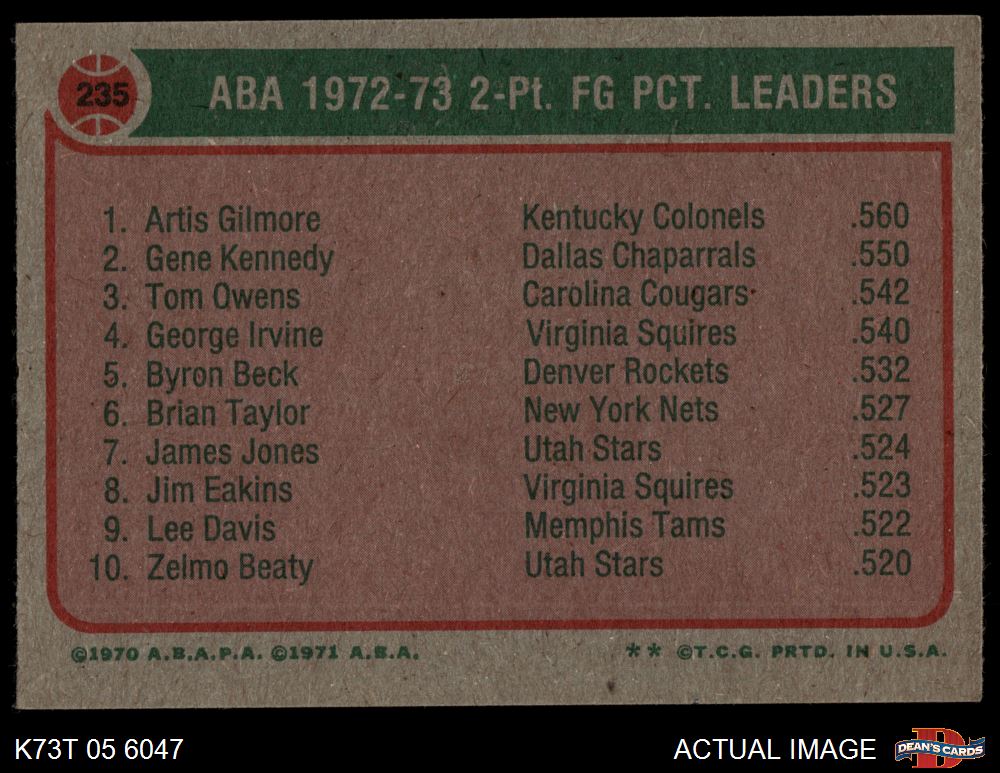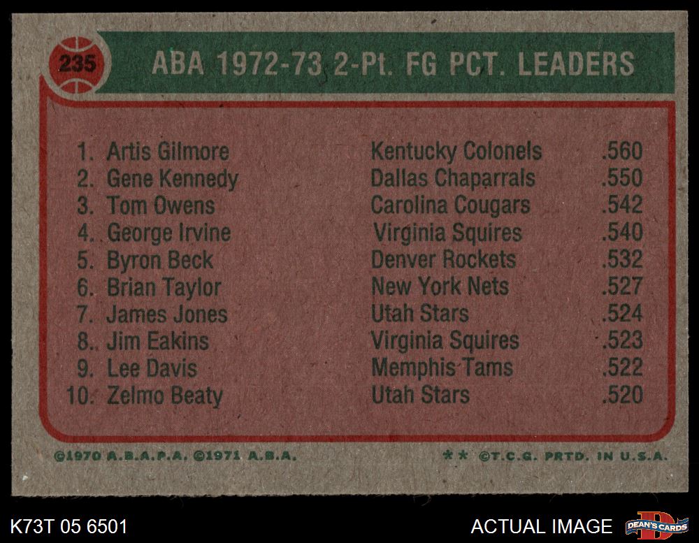 1973 Topps #235 ABA 2 Pt. Field Goal Pct. Leaders