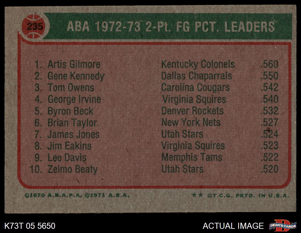 1973 Topps #235 - Artis Gilmore / Gene Kennedy / Tow Owens ABA 2 Pt. Field Goal Pct. Leaders 3 - VG