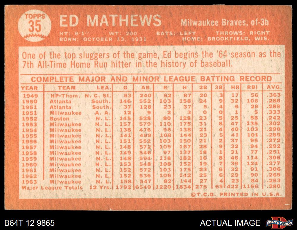 1964 Topps #35 Eddie Mathews