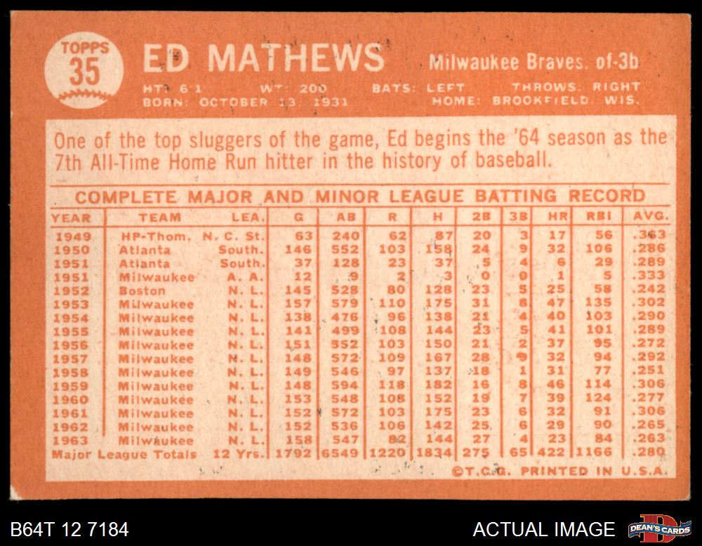 1964 Topps #35 Eddie Mathews 2 - GOOD