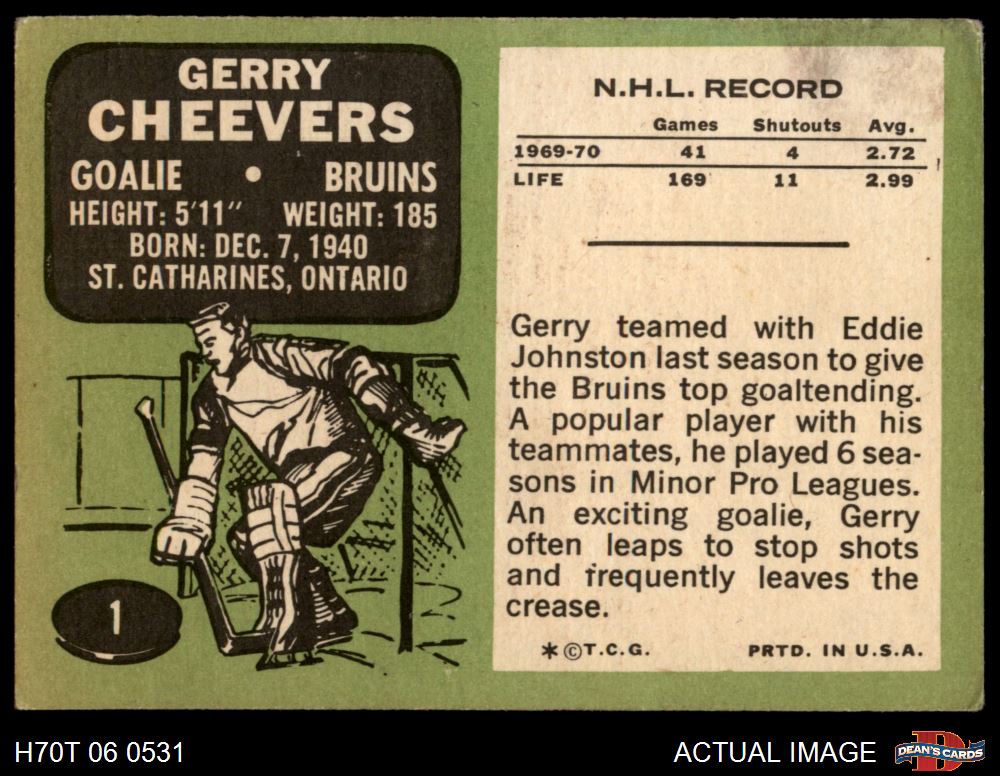 1970 Topps #1 Gerry Cheevers 2 - GOOD