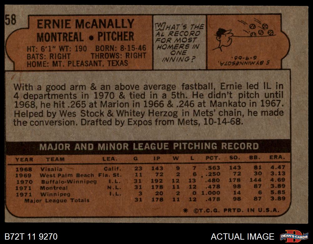 1972 Topps #58 Ernie McAnally