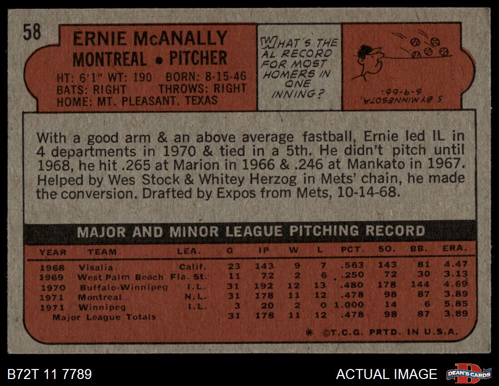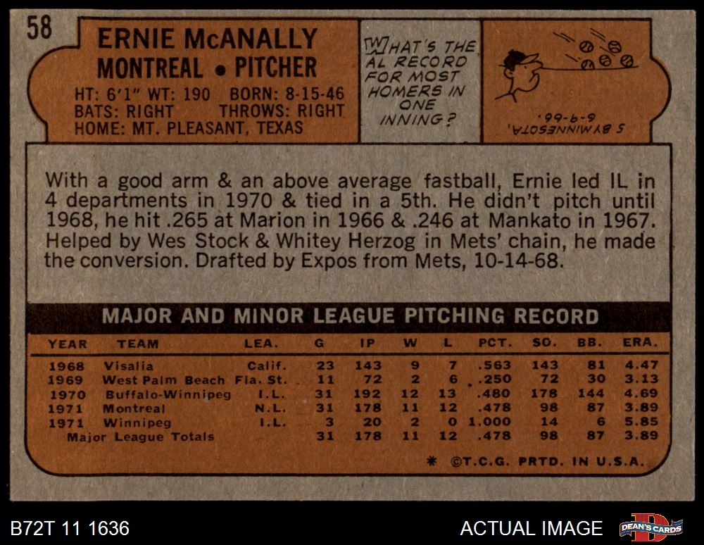 1972 Topps #58 Ernie McAnally 5 - EX