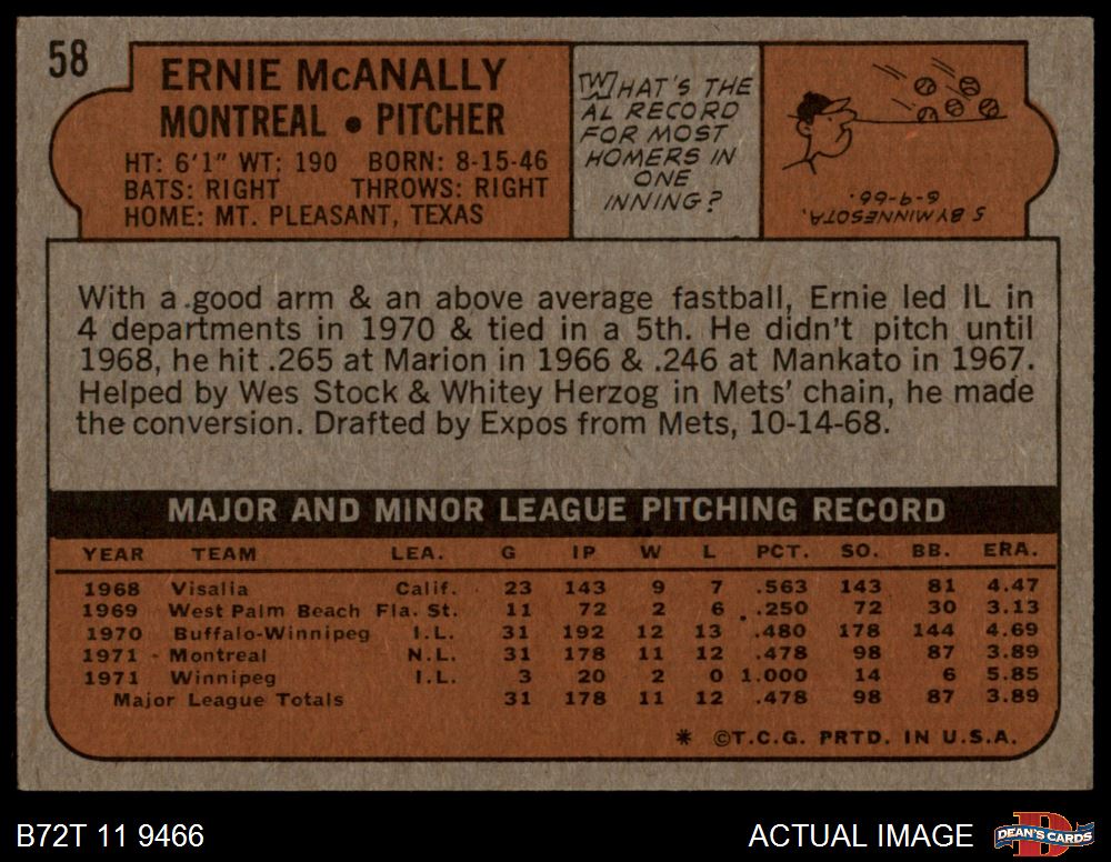 1972 Topps #58 Ernie McAnally 6.5 - EX/MT+