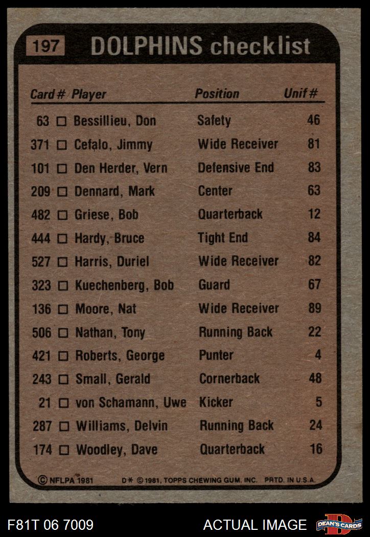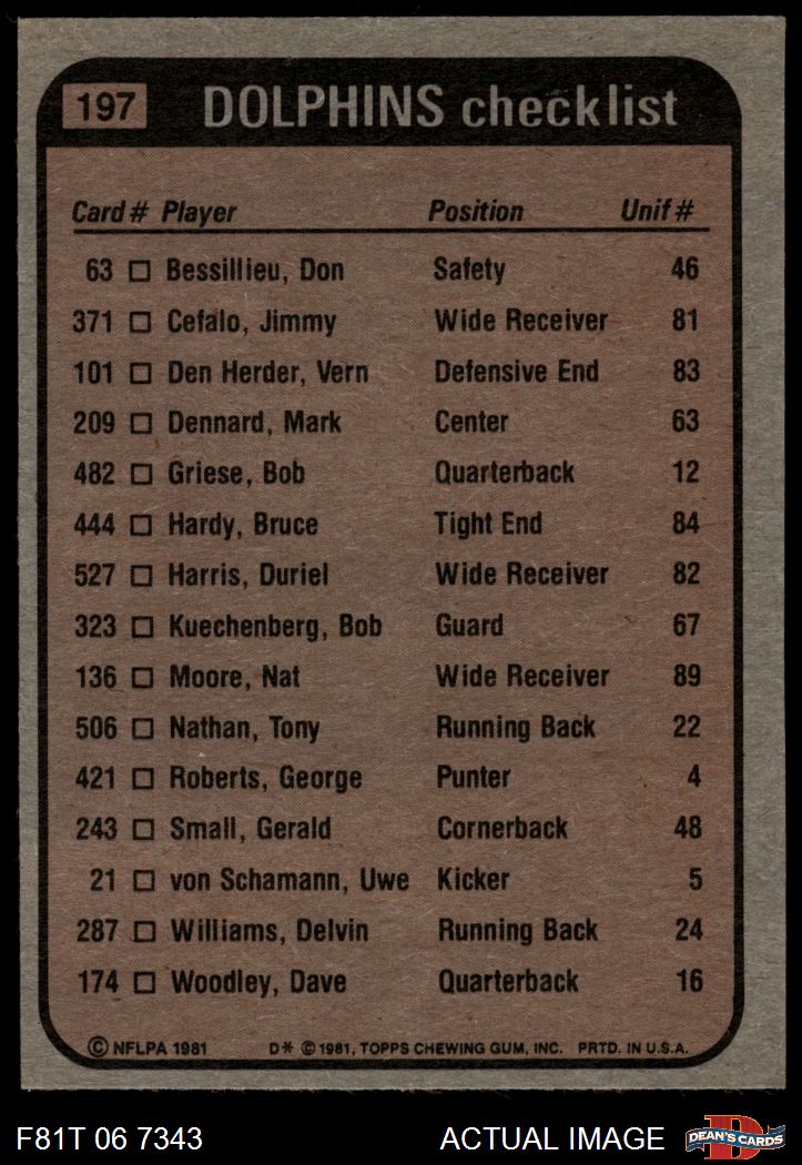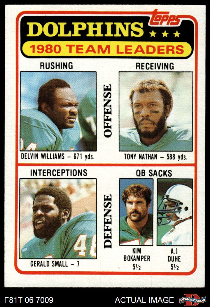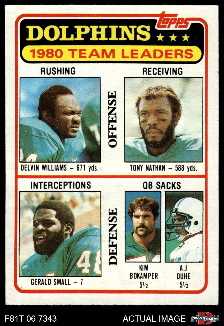 1981 Topps #197 - Delvin Williams / Tony Nathan / Gerald Small / Kim Bokamper / A.J. Duhe Dolphins Leaders & Checklist 7 - NM