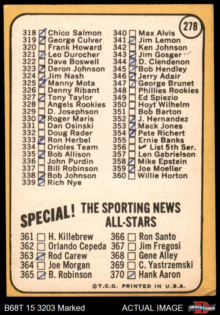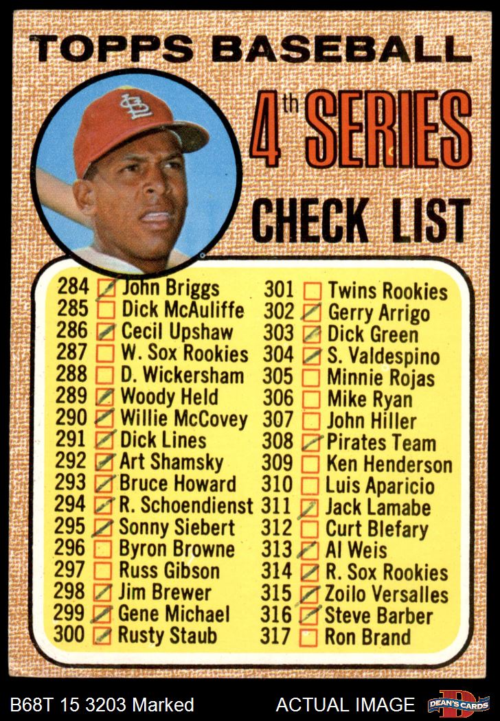 1968 Topps #278 RGT  -  Orlando Cepeda Checklist 4 Front Thumbnail