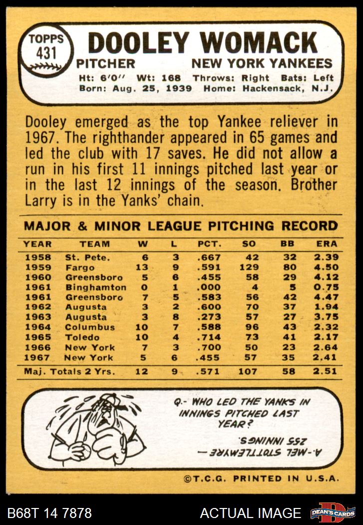 1968 Topps #431 Dooley Womack
