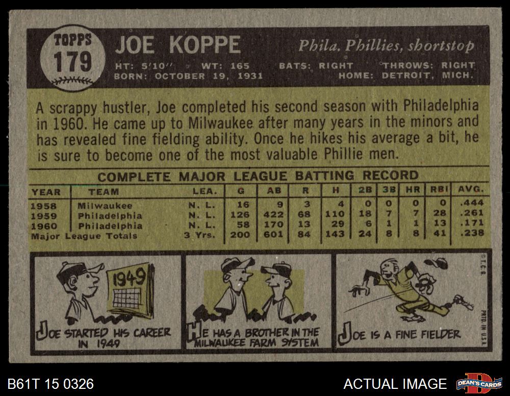 1961 Topps #179 Joe Koppe 4 - VG/EX