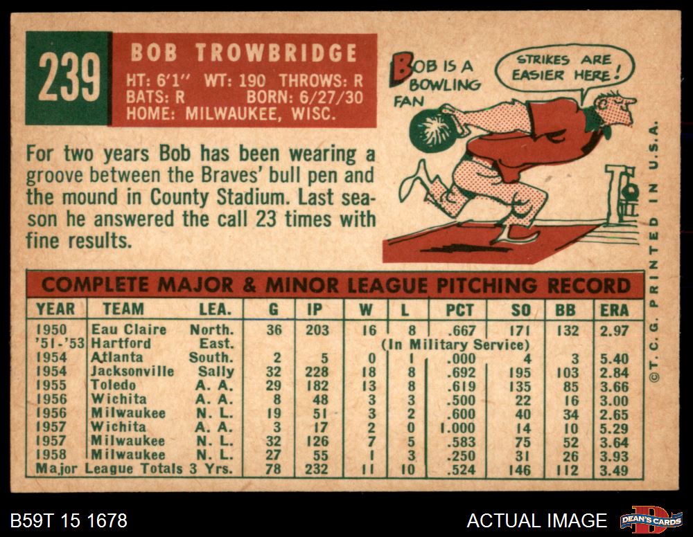 1959 Topps #239 Bob Trowbridge 4 - VG/EX