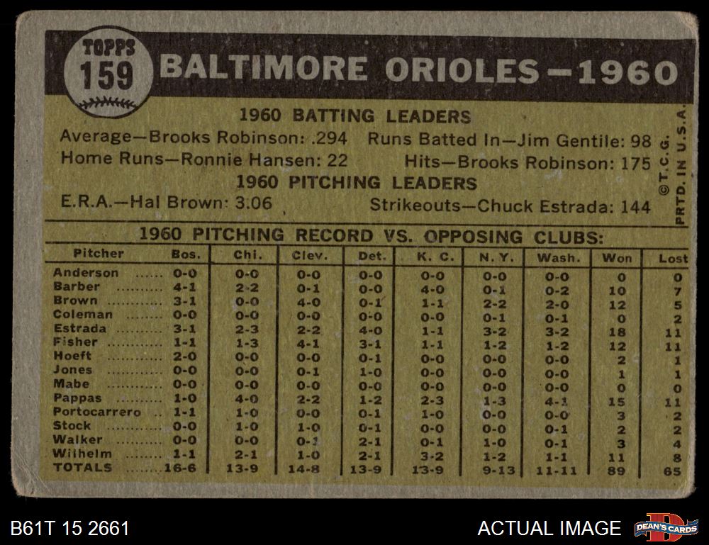 1961 Topps #159 Orioles Team 1 - POOR