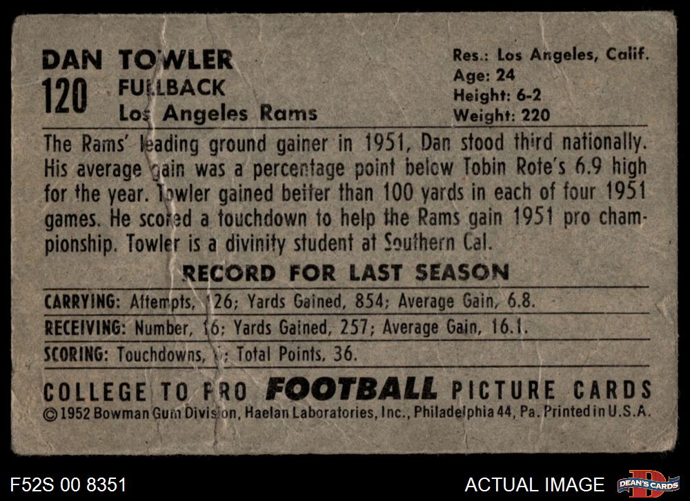1952 Bowman Small #120 Dan Towler AUTHENTIC