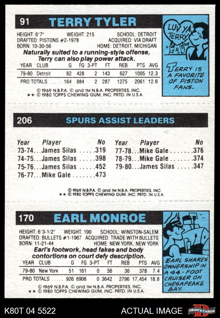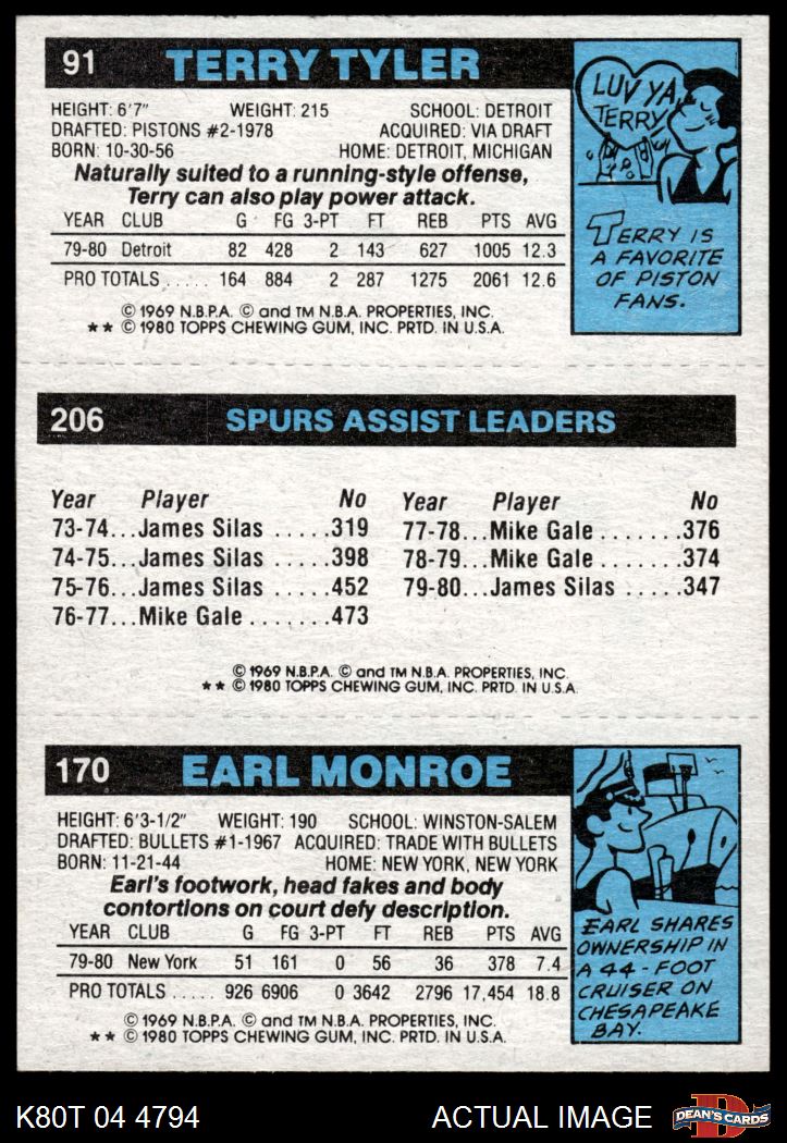 1980 Topps - Earl Monroe / James Silas / Terry Tyler 170 / 206 / 91 7 - NM