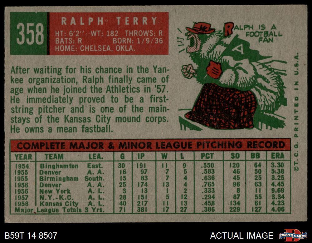 1959 Topps #358 Ralph Terry 4 - VG/EX