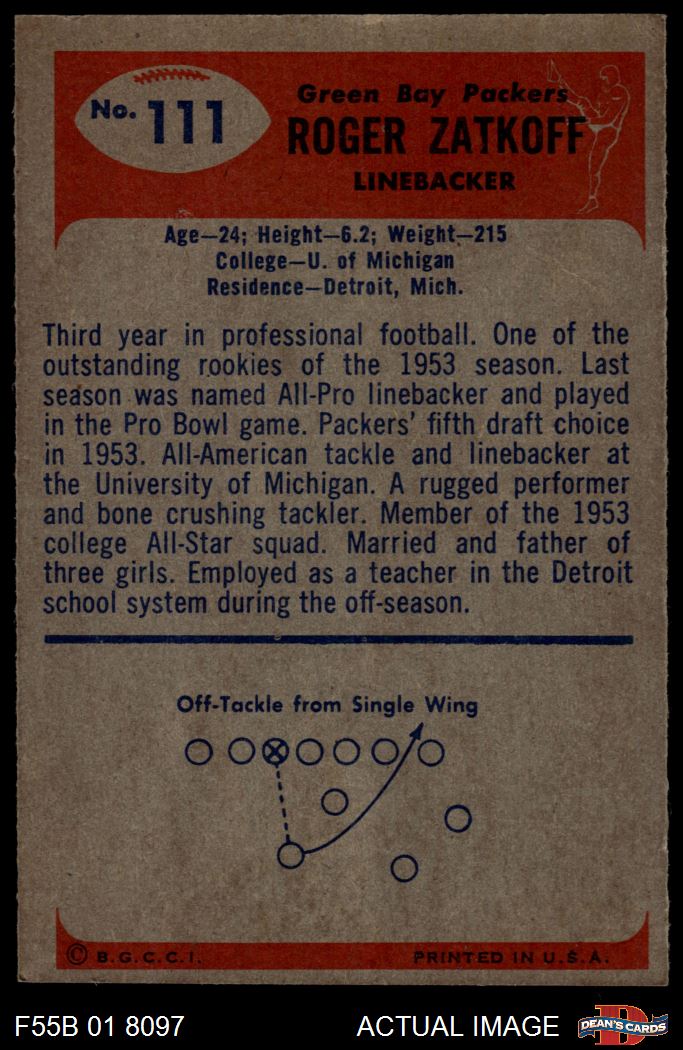 1955 Bowman #111 Roger Zatkoff 3 - VG