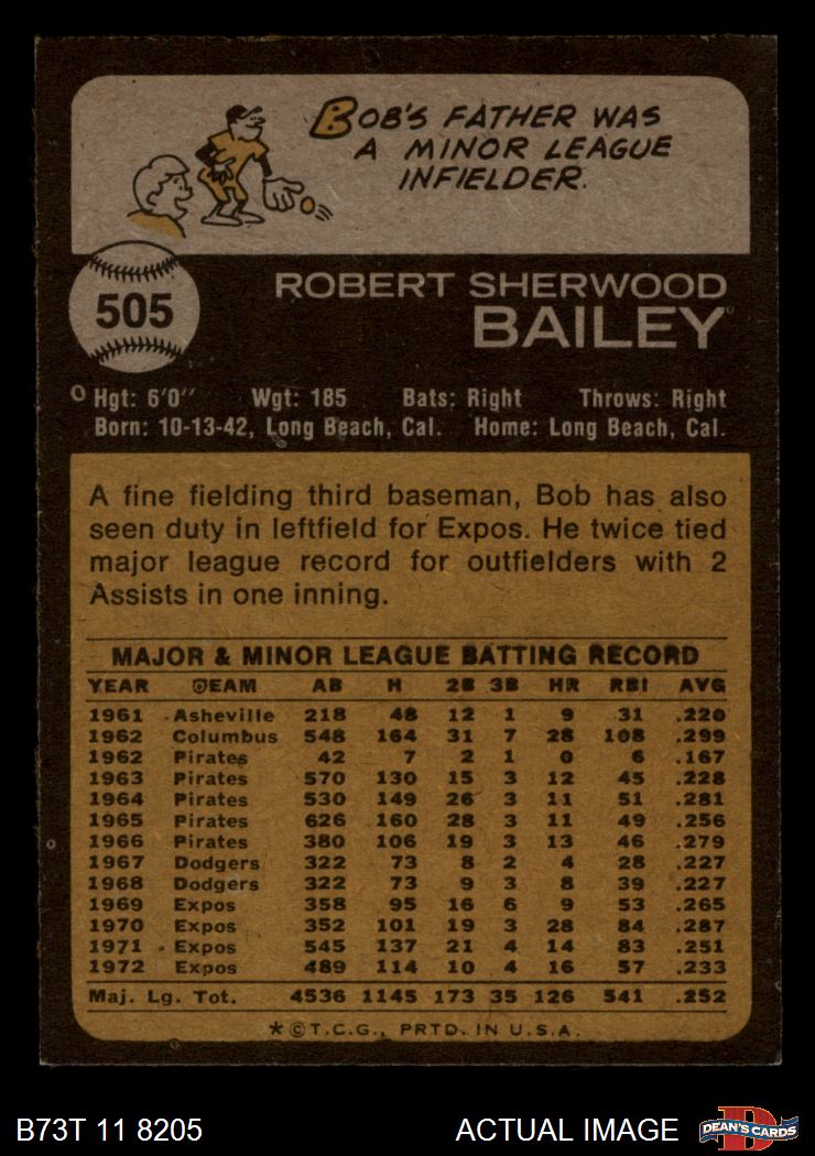 1973 Topps #505 Bob Bailey 4.5 - VG/EX+