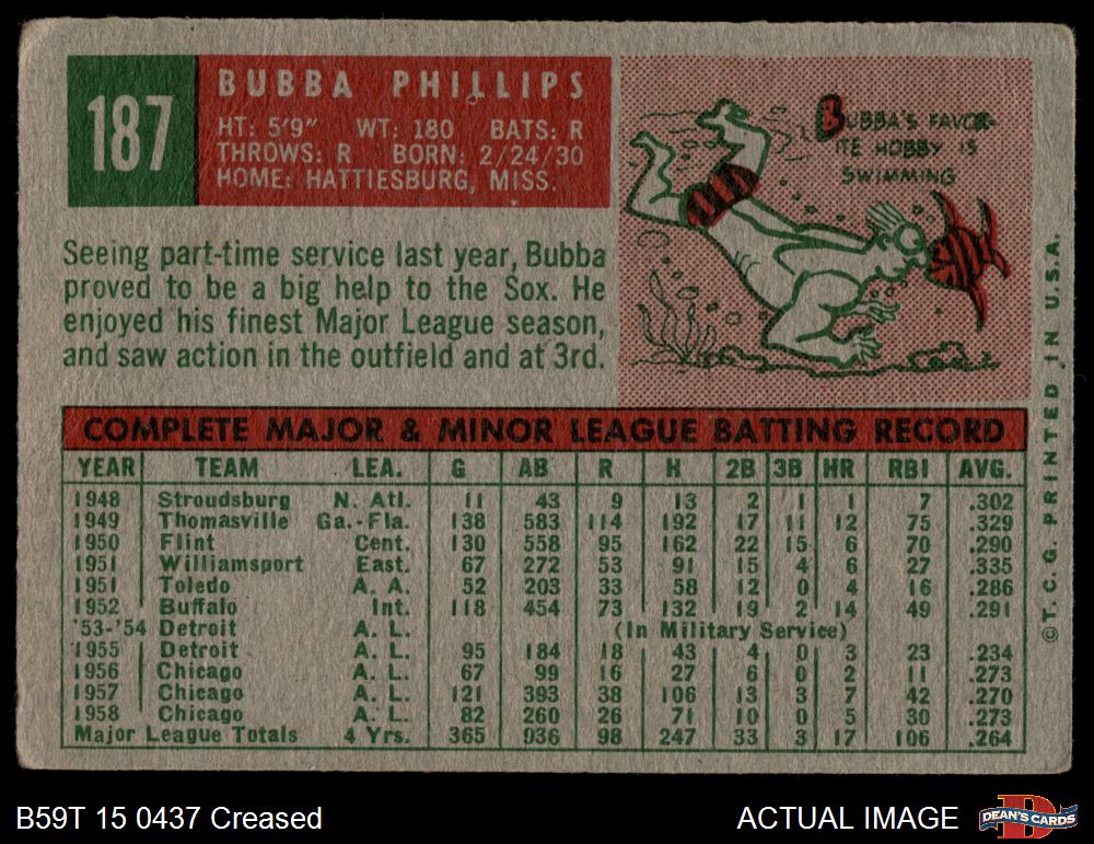 1959 Topps #187 Bubba Phillips 1.5 - FAIR