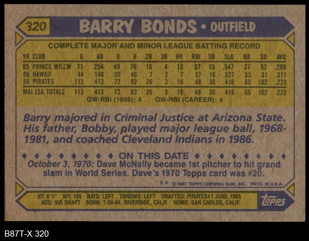 1987 Topps #320 Barry Bonds