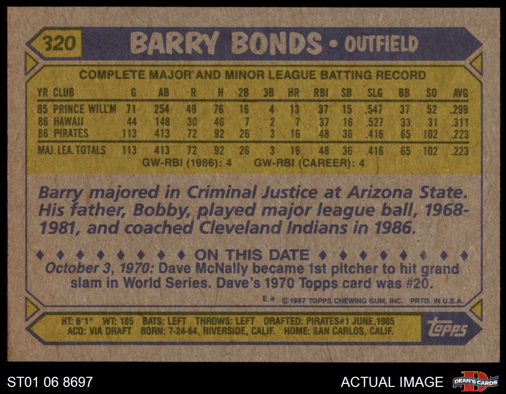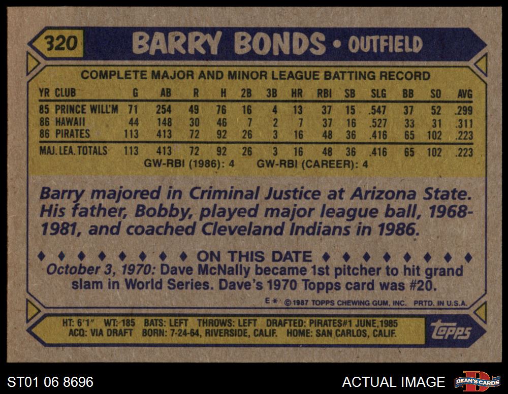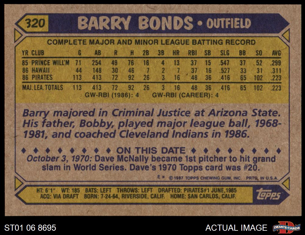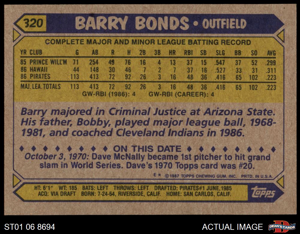 1987 Topps #320 Barry Bonds 8 - NM/MT