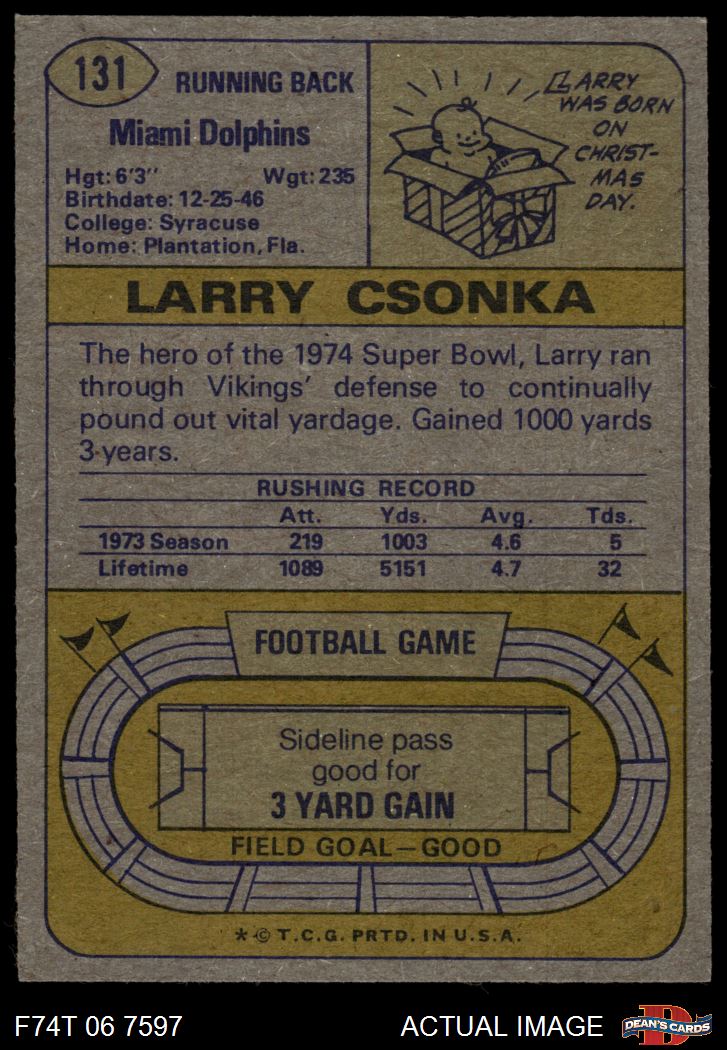 1974 Topps #131 - Larry Csonka All-Pro 8 - NM/MT