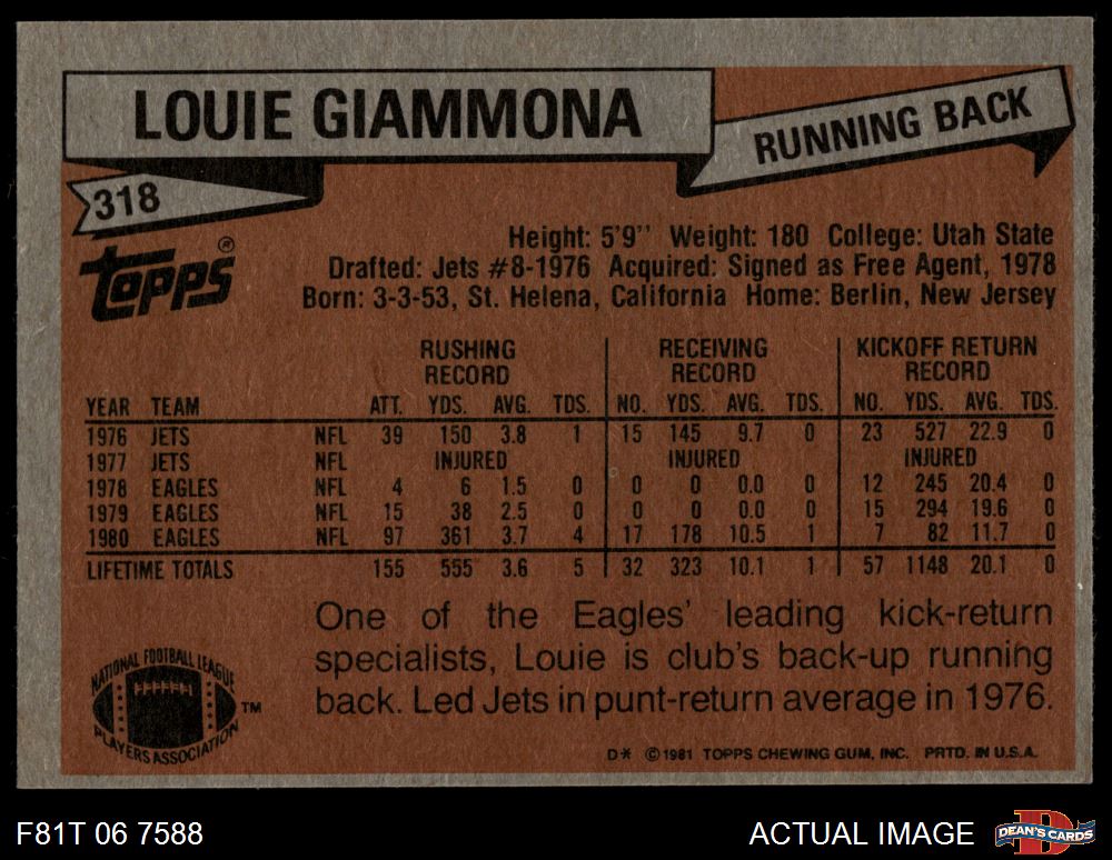 1981 Topps #318 Louie Giammona 6 - EX/MT
