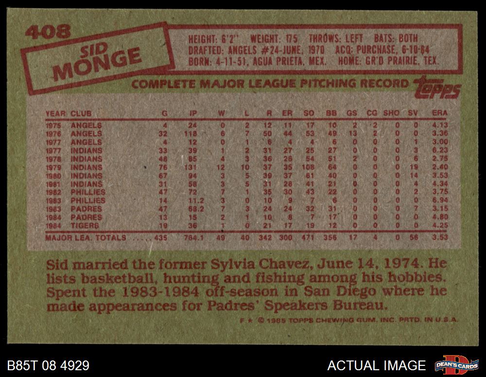 1985 Topps #408 Sid Monge 8 - NM/MT