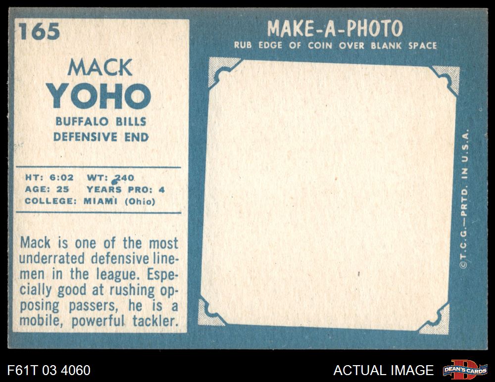 1961 Topps #165 Mack Yoho 3 - VG