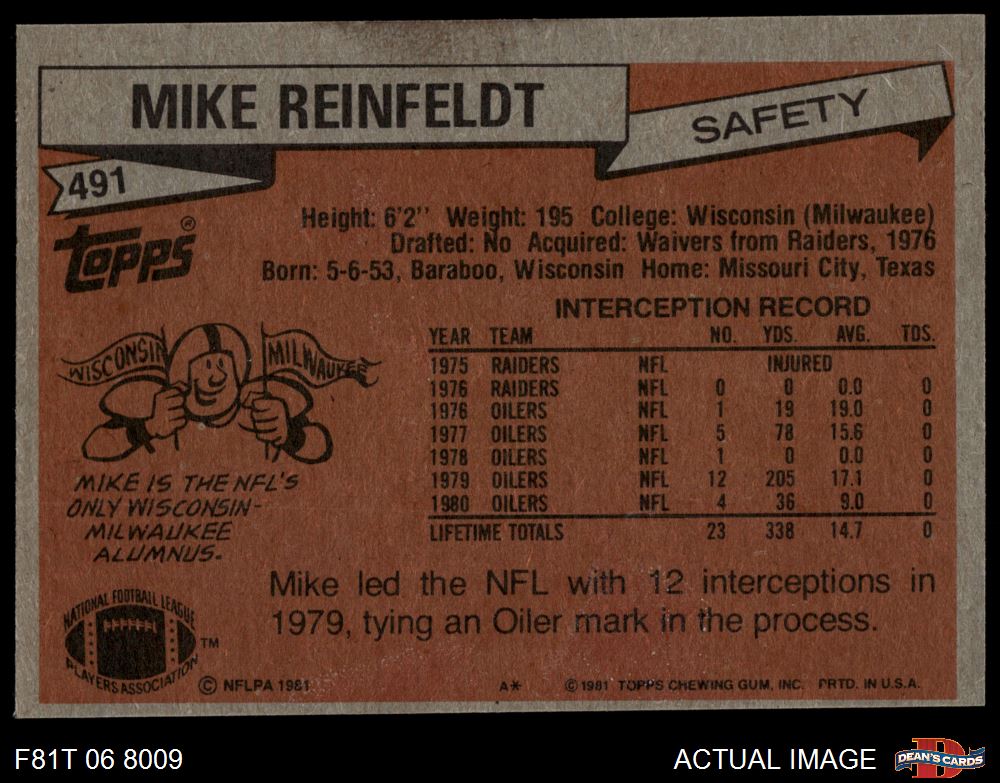 1981 Topps #491 Mike Reinfeldt 6 - EX/MT