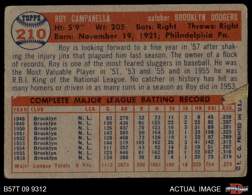 1957 Topps #210 Roy Campanella