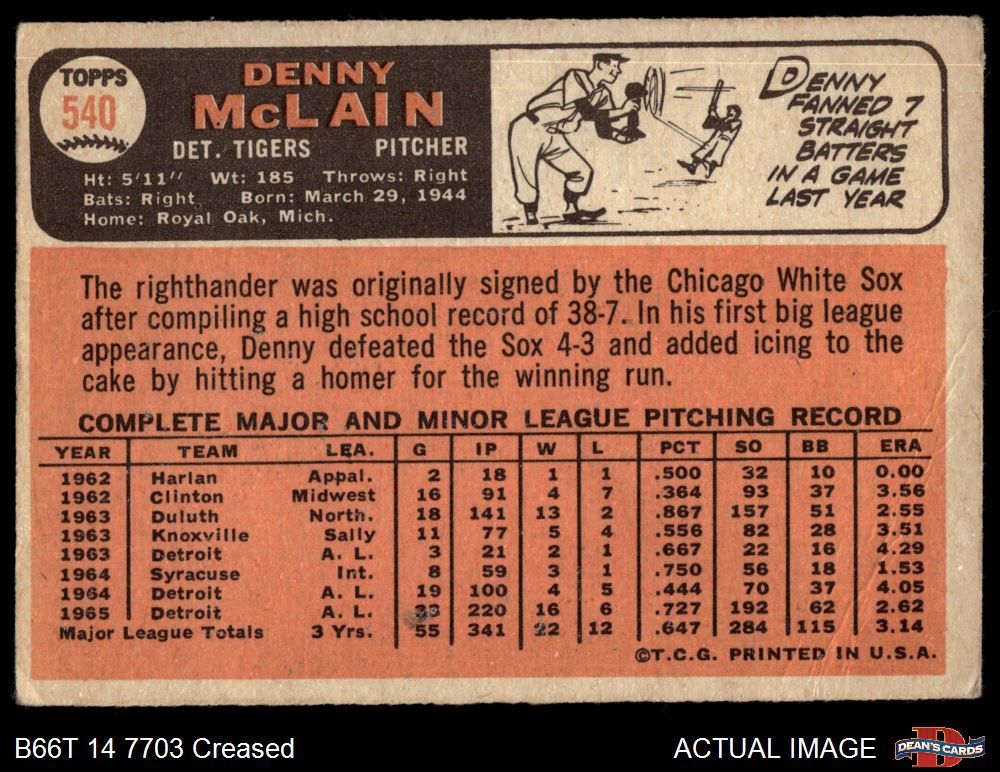 1966 Topps #540 Denny McLain 2 - GOOD
