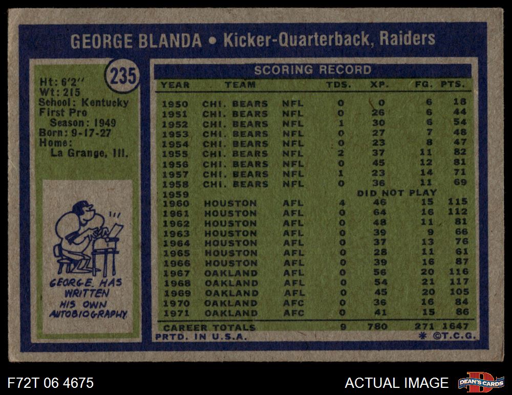 1972 Topps #235 George Blanda 3.5 - VG+