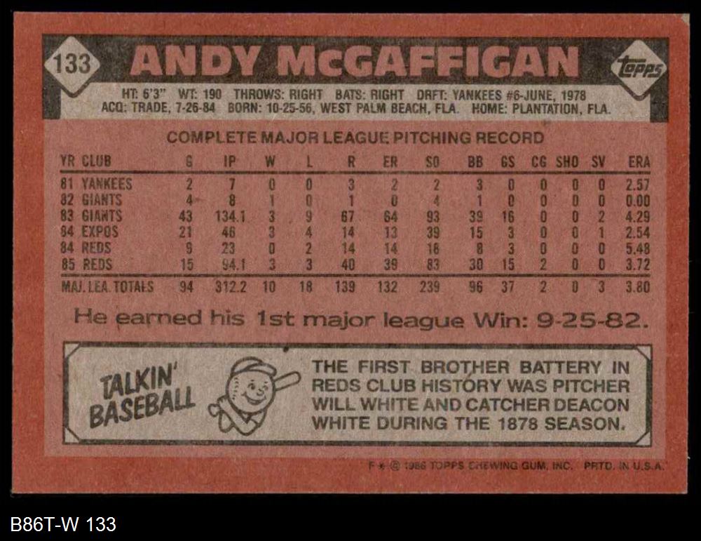 1986 Topps #133 Andy McGaffigan 8 - NM/MT