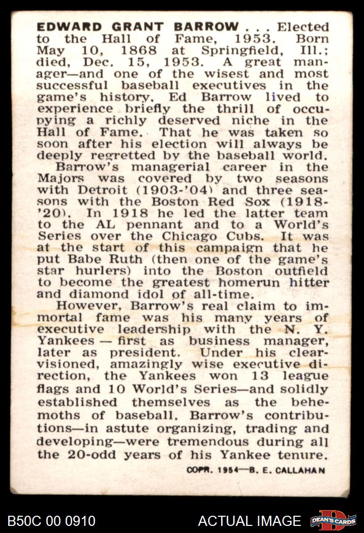 1950 Callahan Hall of Fame Issued in 1954 Edward G. Barrow 3.5 - VG+