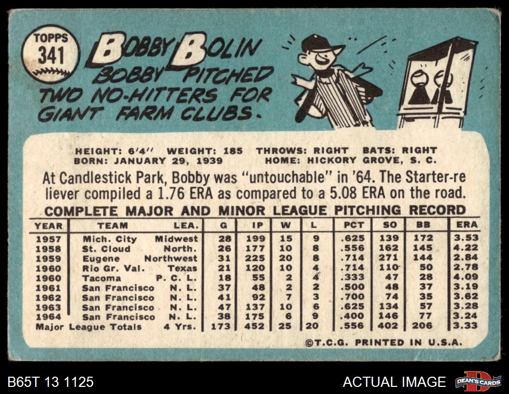 1965 Topps #341 Bobby Bolin 1.5 - FAIR