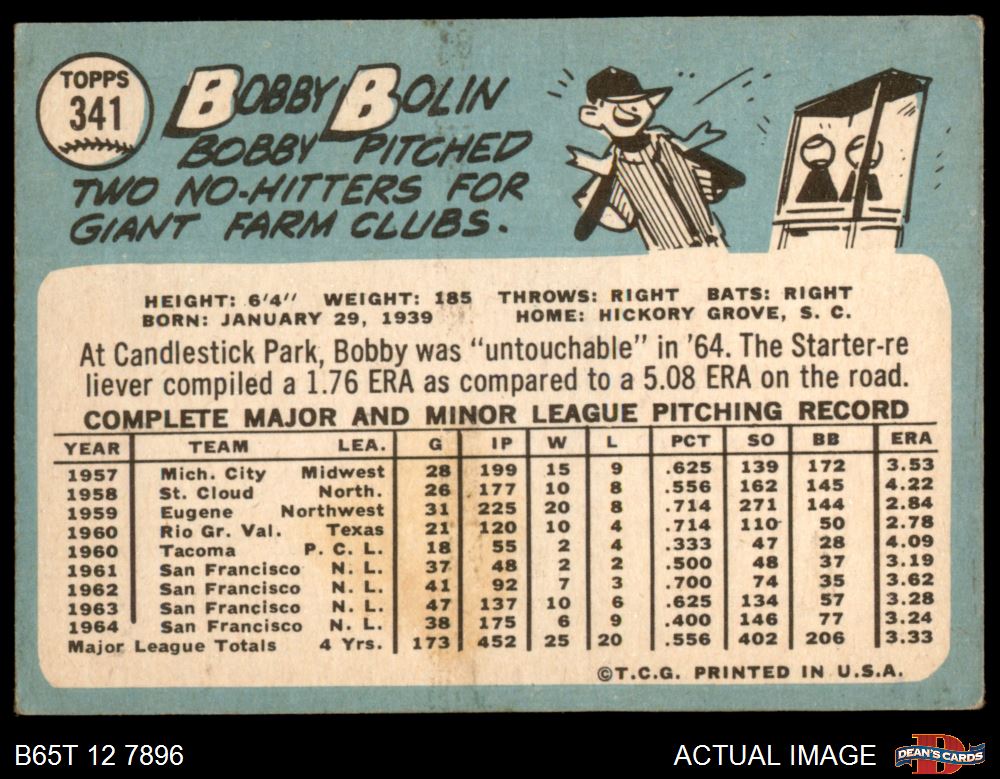 1965 Topps #341 Bobby Bolin 2 - GOOD
