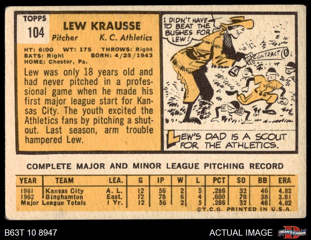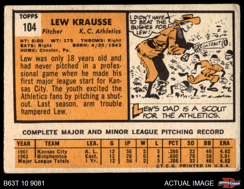 1963 Topps #104 Lew Krausse 2 - GOOD