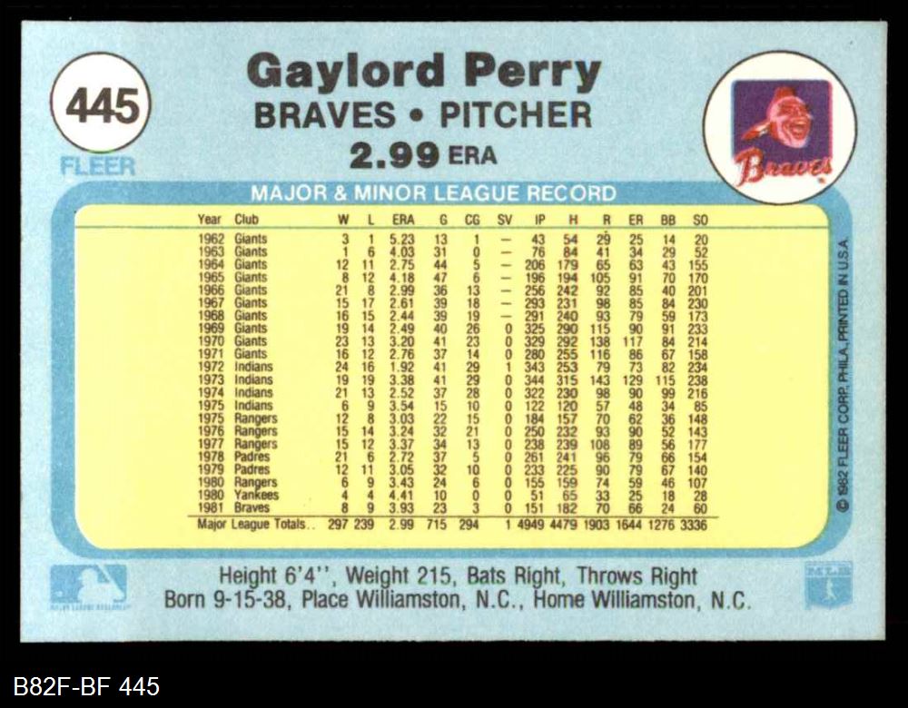 1982 Fleer #445 Gaylord Perry 8 - NM/MT