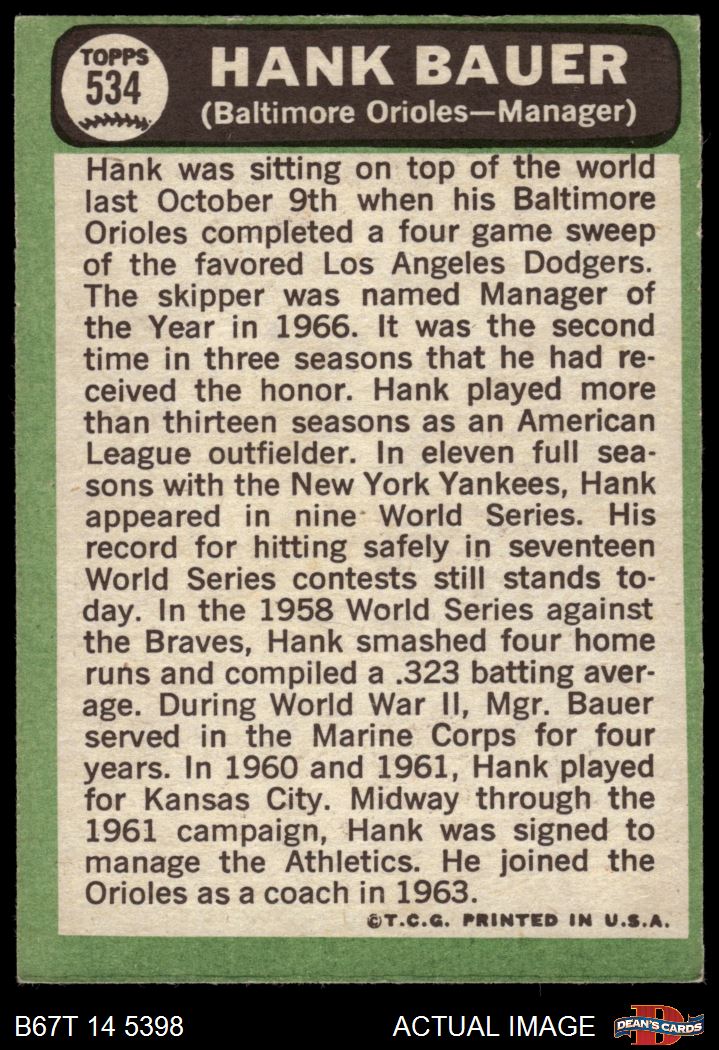 1967 Topps #534 Hank Bauer 4 - VG/EX