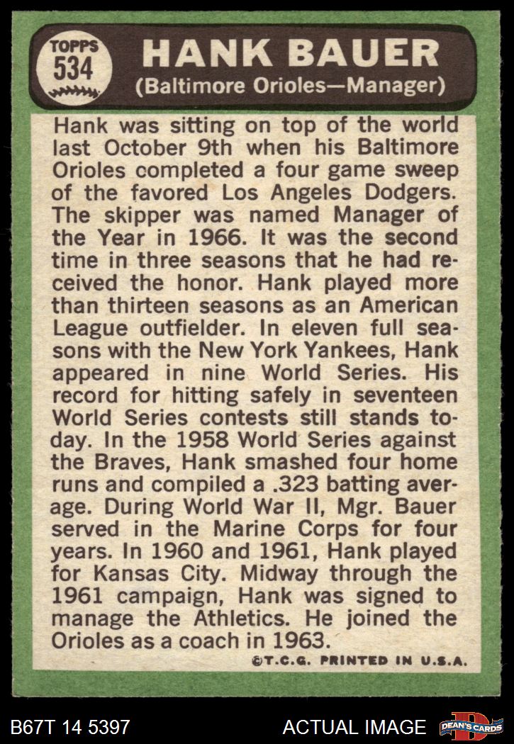 1967 Topps #534 Hank Bauer 6 - EX/MT