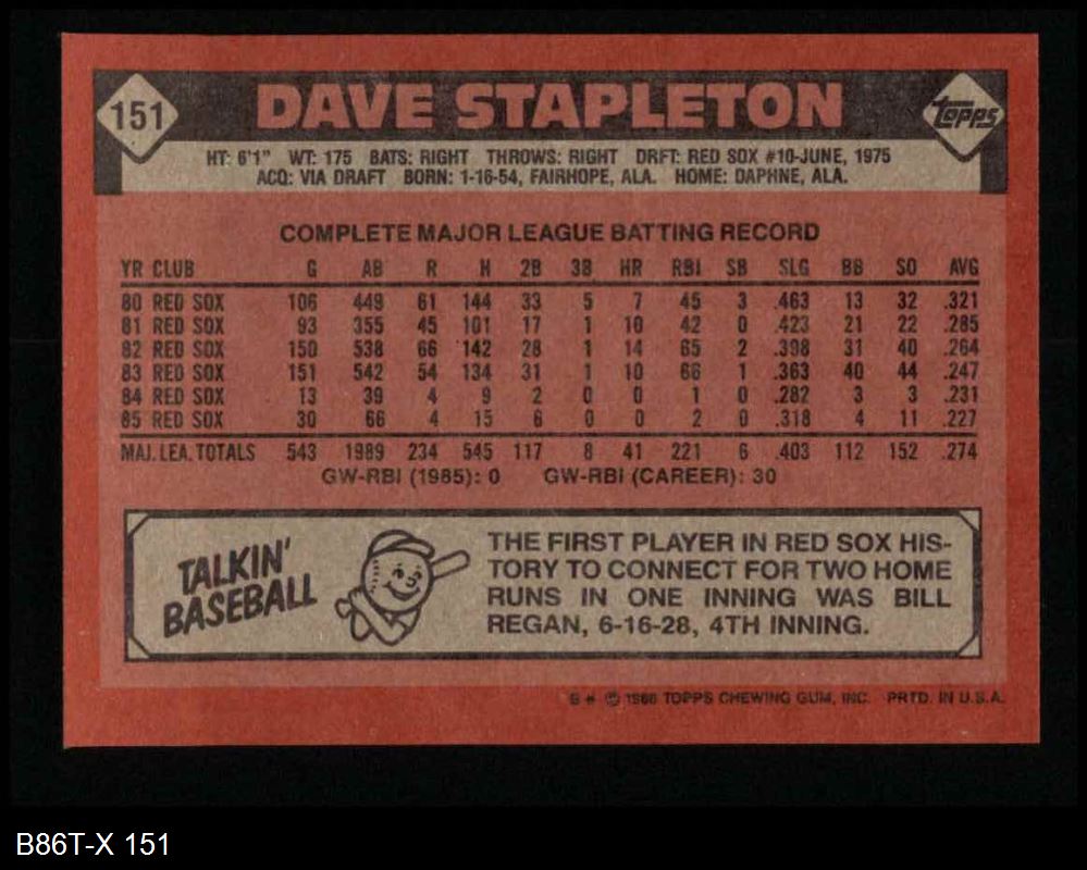 1986 Topps #151 Dave Stapleton