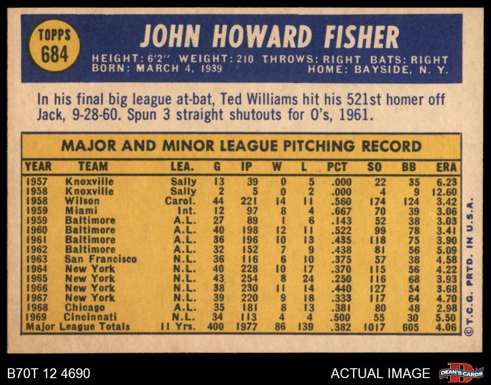 1970 Topps #684 Jack Fisher 7 - NM