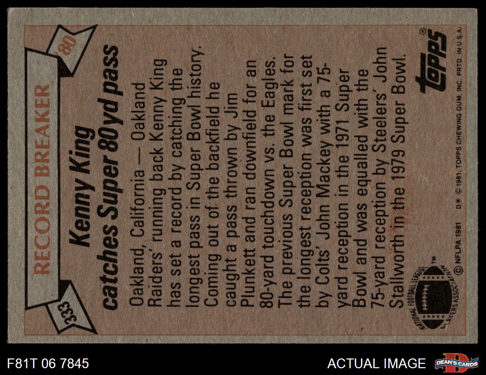 1981 Topps #333 - Kenny King Record Breaker 4.5 - VG/EX+