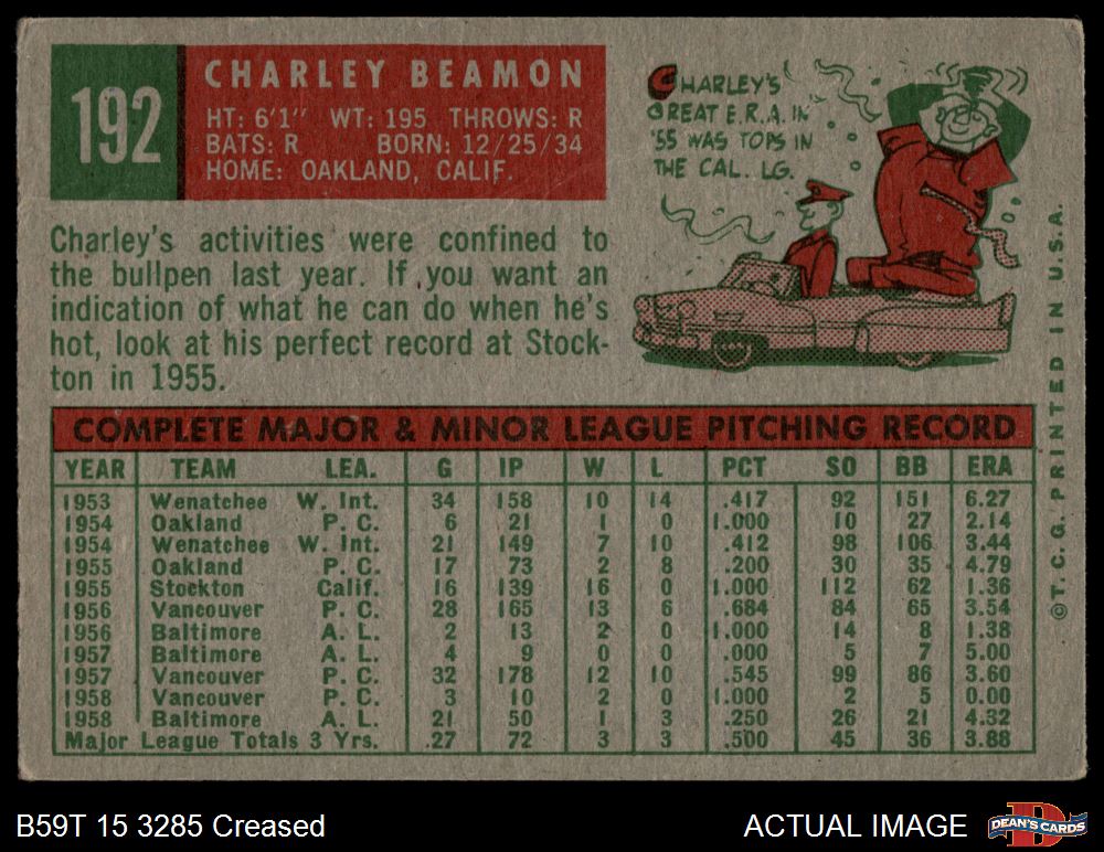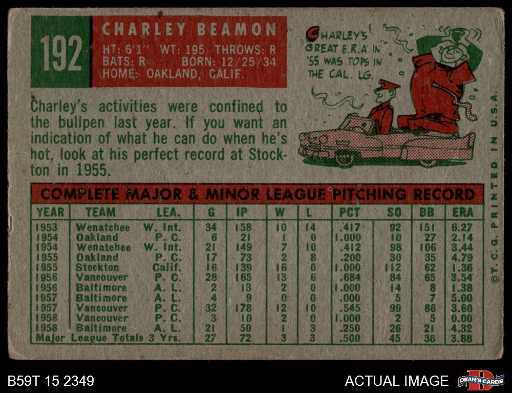 1959 Topps #192 Charley Beamon